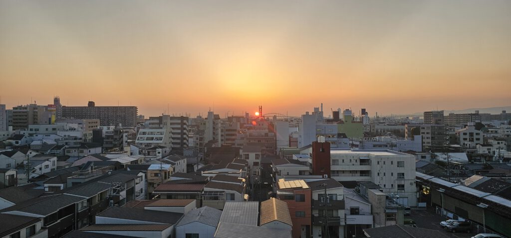 Ende gut, alles gut. Günstiges Hotel gefunden mit Ausblick auf die Osaka-Bucht, Schlaf nachgeholt, das Japan-Abenteuer kann starten!